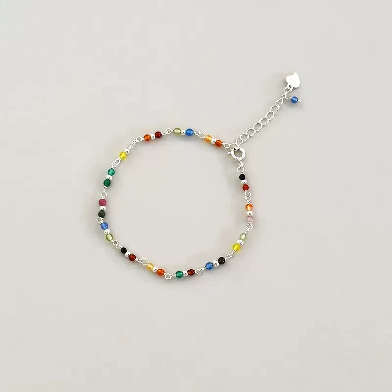 Bracelet - Trendy Colorful Natural Stone Agate Bracelet Real Silver
