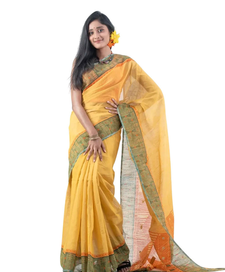 Sharee - Cotton sharee features screen-print, handwork & embroidery work.