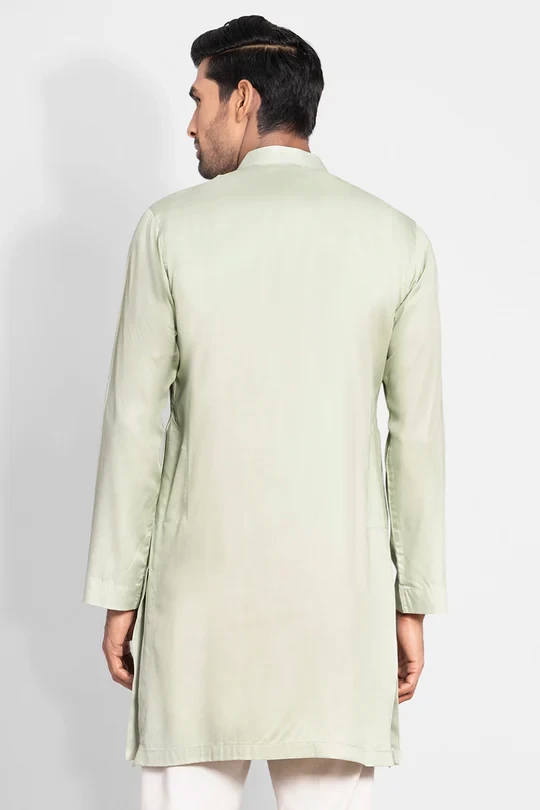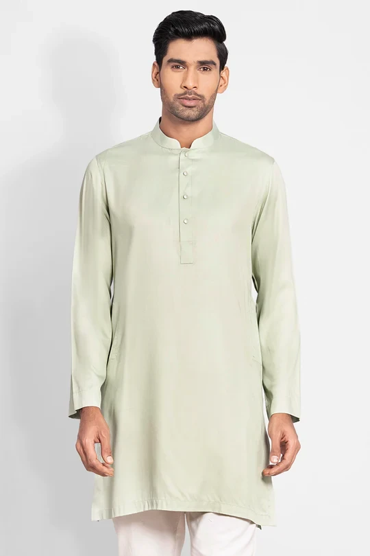 Elevate your festive look with this slim-fit Panjabi. Crafted from breathable 100% cotton, this essential piece offers both comfort and a flattering silhouette. The clean, basic style ensures timeless versatility, while the decorative metal show button on the placket adds a touch of understated elegance. Perfect for any occasion, this Panjabi is a wardrobe must-have.