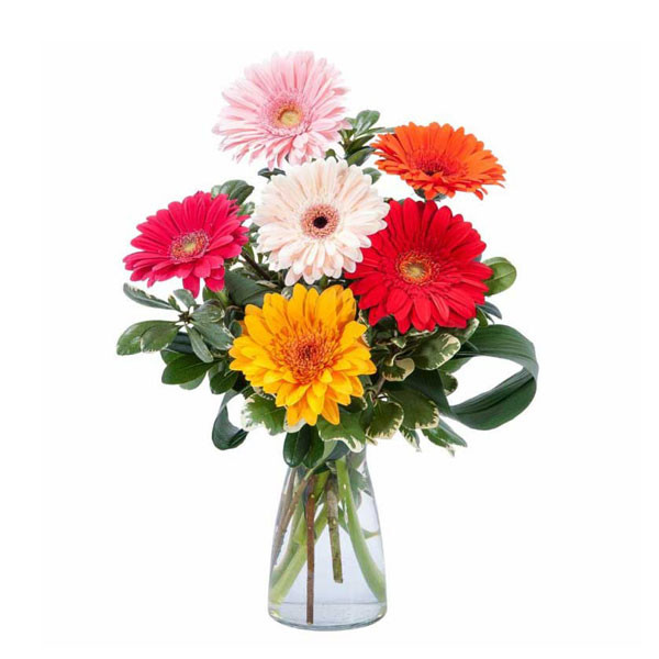 • 6 Pcs Beautiful Mix Gerbera in a Glass Vase