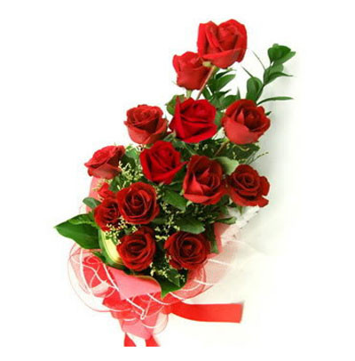 • 12 Pcs / 15Pcs / 18 Pcs Beautiful Deshi red Roses with color Tissue in a bouquet.