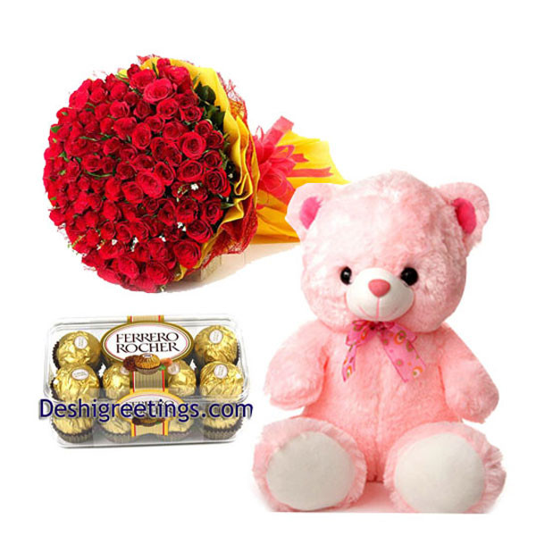 Deshi Roses, Chocolates & Teddy Bear: A Heartfelt Trio of Gifts