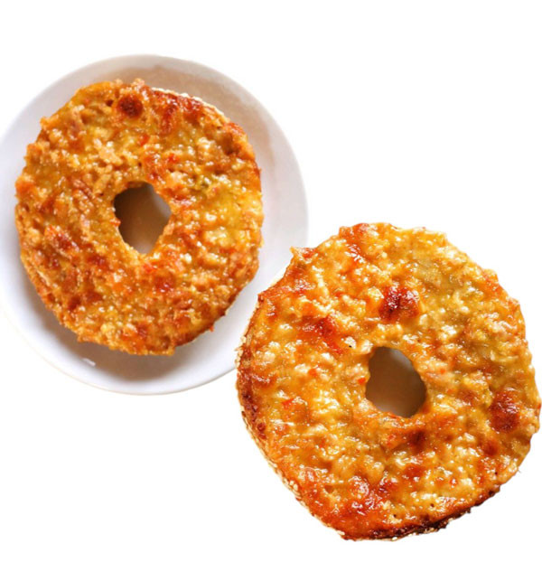 • The goodness of cheese, onion, chicken & chili toasted on a bagel.
