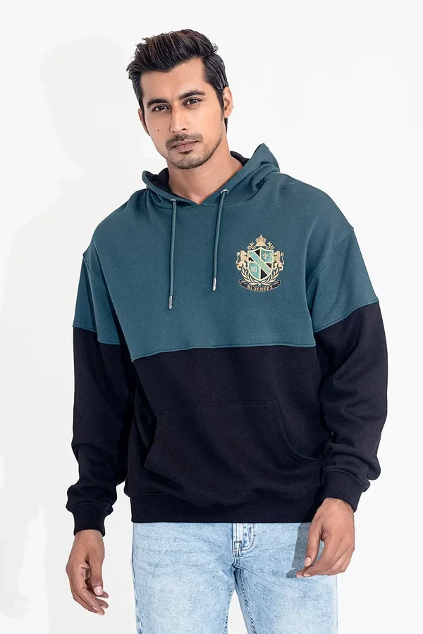 Men Hoodie - Drop Shoulder Embroidered Hoodie