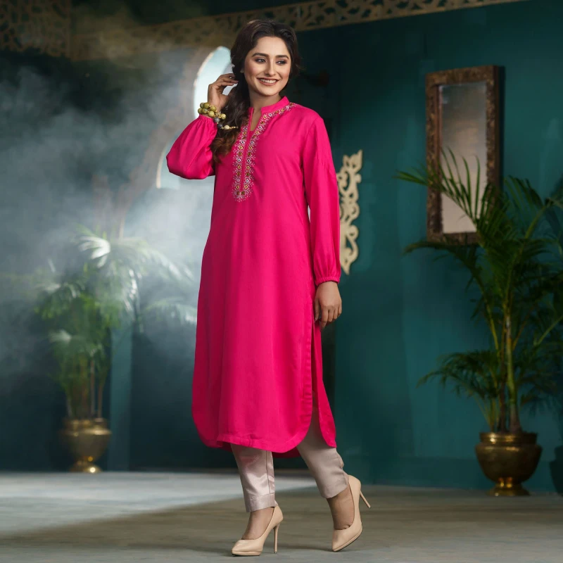 This multi-color ethnic average kurti is perfect for adding a pop of color and vibrancy to your wardrobe. Made with high-quality fabric, it provides comfort and style for any occasion. Stand out from the crowd and embrace your unique style with this kurti.