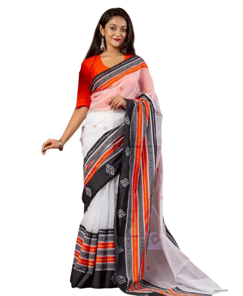 Women's Sharee - Half-Silk sharee feature Block-print & Hand-work
