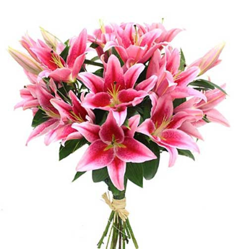 • Imported pink lilies in a bouquet.