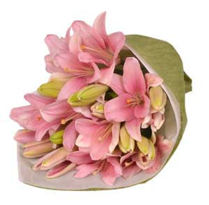 • Imported pink lilies in a bouquet.