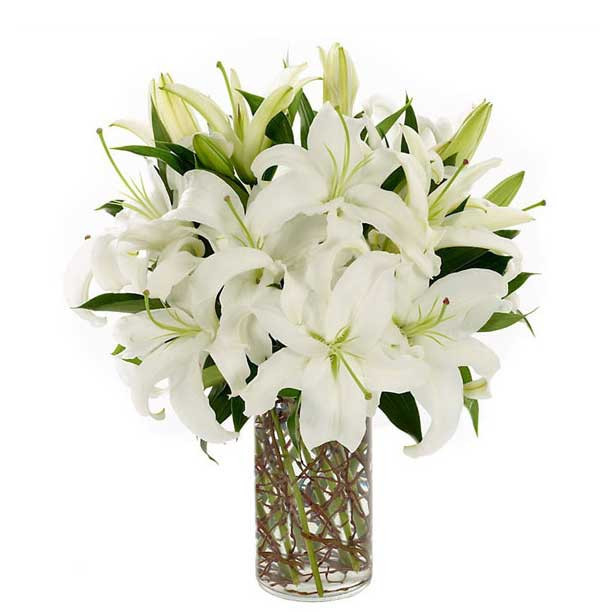 • 10 Pcs / 12 Pcs / 15 Pcs Fresh and beautiful Imported White Lilies