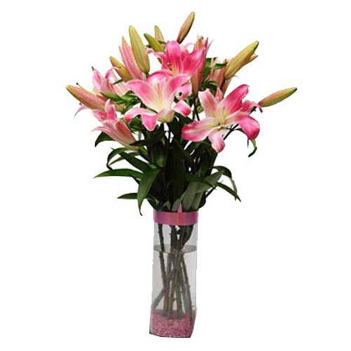 Imported Pink Lilies: Gracefully Displayed in a Vase