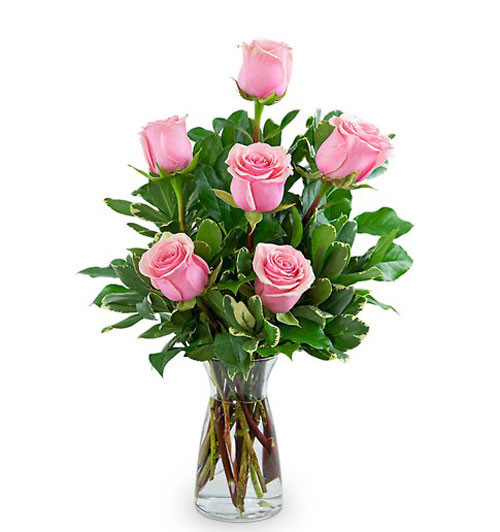 • 6 Pcs / 10 Pcs /  15 Pcs / Beautiful Imported Pink Roses in a Vase.