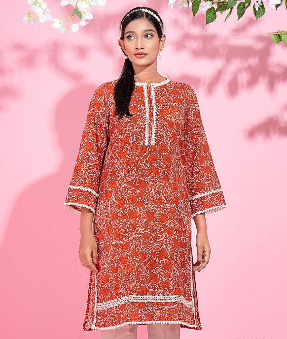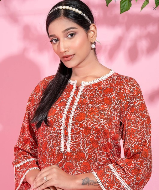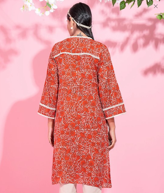 Round neck with lace details long kurta:-