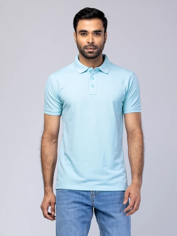 Polo Shirt : Light Sky Blue Mixed Cotton Polo Shirt