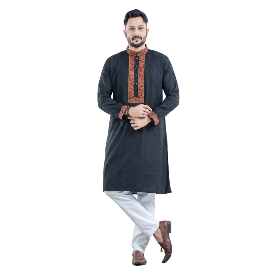 Introducing our Cotton Panjabi, a harmonious blend of comfort and style. This Panjabi features intricate screen-print designs complemented by exquisite embroidery work, creating a look that's both traditional and contemporary. Made from high-quality cotton, it ensures breathability and comfort, perfect for any occasion. Whether for festive events or casual outings, this Panjabi adds a touch of elegance to your wardrobe. Embrace the perfect combination of cultural heritage and modern flair with this beautifully designed piece.