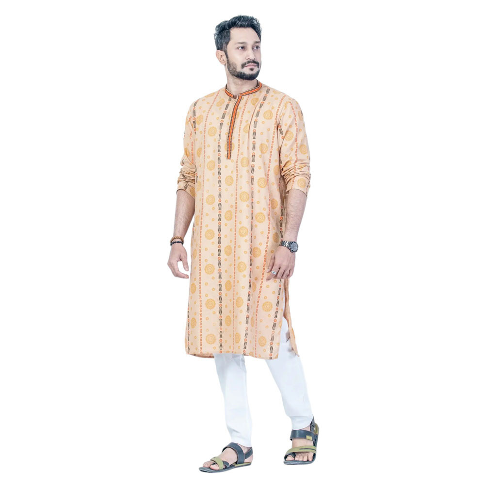 Introducing our Cotton Panjabi, a harmonious blend of comfort and style. This Panjabi features intricate screen-print designs complemented by exquisite embroidery work, creating a look that's both traditional and contemporary. Made from high-quality cotton, it ensures breathability and comfort, perfect for any occasion. Whether for festive events or casual outings, this Panjabi adds a touch of elegance to your wardrobe. Embrace the perfect combination of cultural heritage and modern flair with this beautifully designed piece.