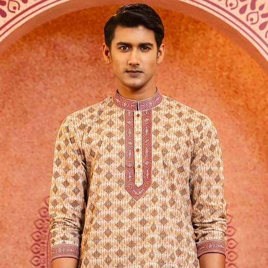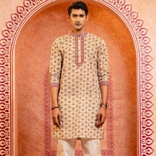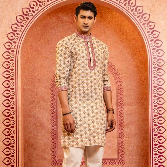 Multicolor cotton printed & embroidered regular fit ekchart Panjabi