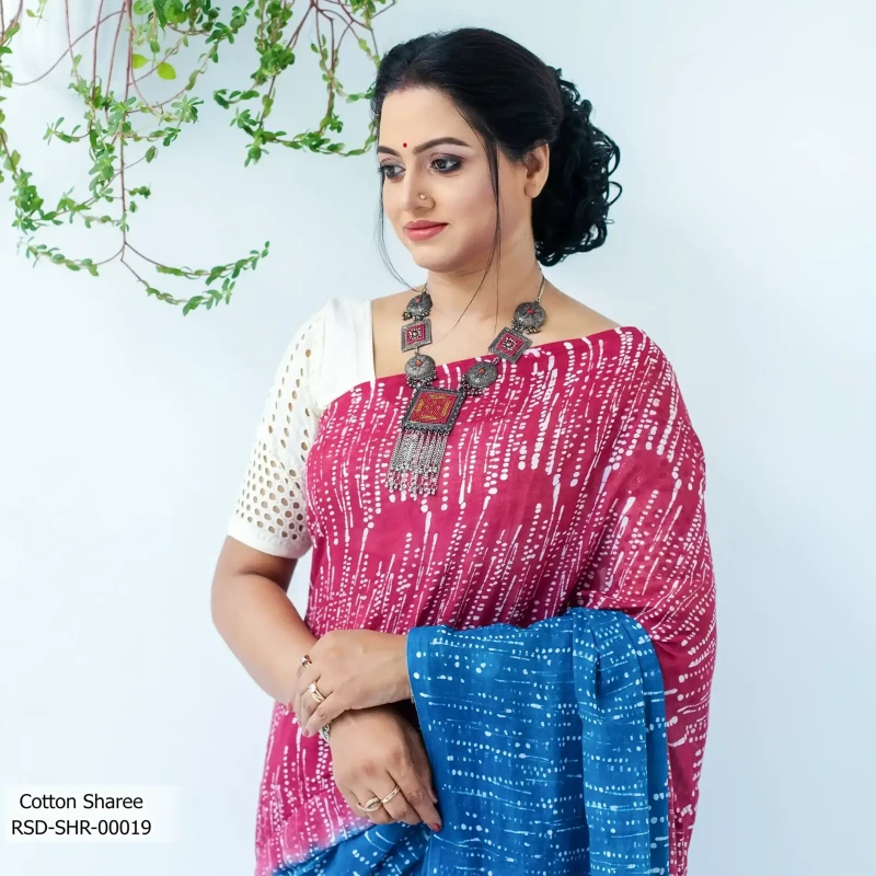 Introducing our exquisite slub-cotton Sharee, adorned with intricate screen-print and handwork detailing, designed to elevate your ethnic wardrobe with effortless elegance. Crafted from high-quality slub-cotton fabric, this Sari boasts a luxurious texture and comfortable feel, perfect for all-day wear. The delicate screen-print adds a touch of sophistication, while the handwork detailing adds a hint of artisanal charm. Whether it's a festive celebration or a formal event, this Sari is sure to make you stand out with its unique blend of traditional craftsmanship and contemporary style. Embrace timeless beauty with our slub-cotton Sari and make a statement with every step.