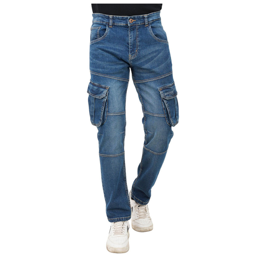 Premium Denim Semi Fit Cargo Mid Blue Pant For Men