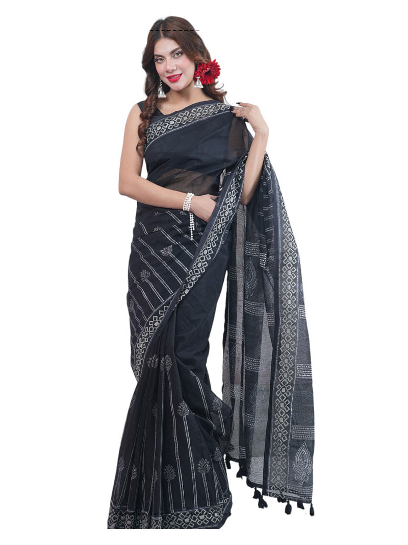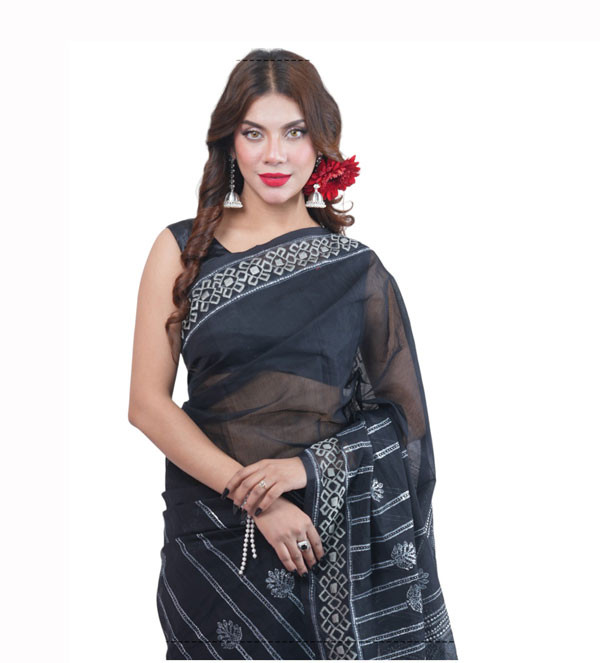 Make a statement this Eid with our exquisite Half Silk Sharee, meticulously designed with Media Block motifs and intricate embroidery in timeless Black & White hues. Crafted from top-quality fabric, this Sharee embodies elegance and sophistication, making it a perfect choice for your festive celebrations.
