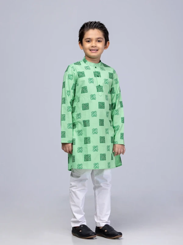 Toddler Boy - Green Printed Cotton Panjabi