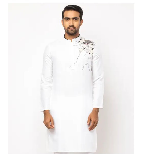 Introducing our White Cotton Slim Fit Panjabi – a perfect fusion of timeless design and modern sophistication. Crafted from premium cotton, this slim-fit panjabi offers a crisp and clean aesthetic that exudes both comfort and style. The subtle elegance is enhanced by meticulous embroidery detailing, adding a touch of refinement to this classic piece.