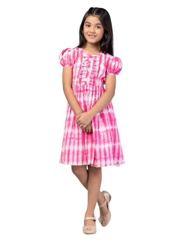 Baby Girls - White/Pink Tie-Dyed and Embroidered Cotton Frock